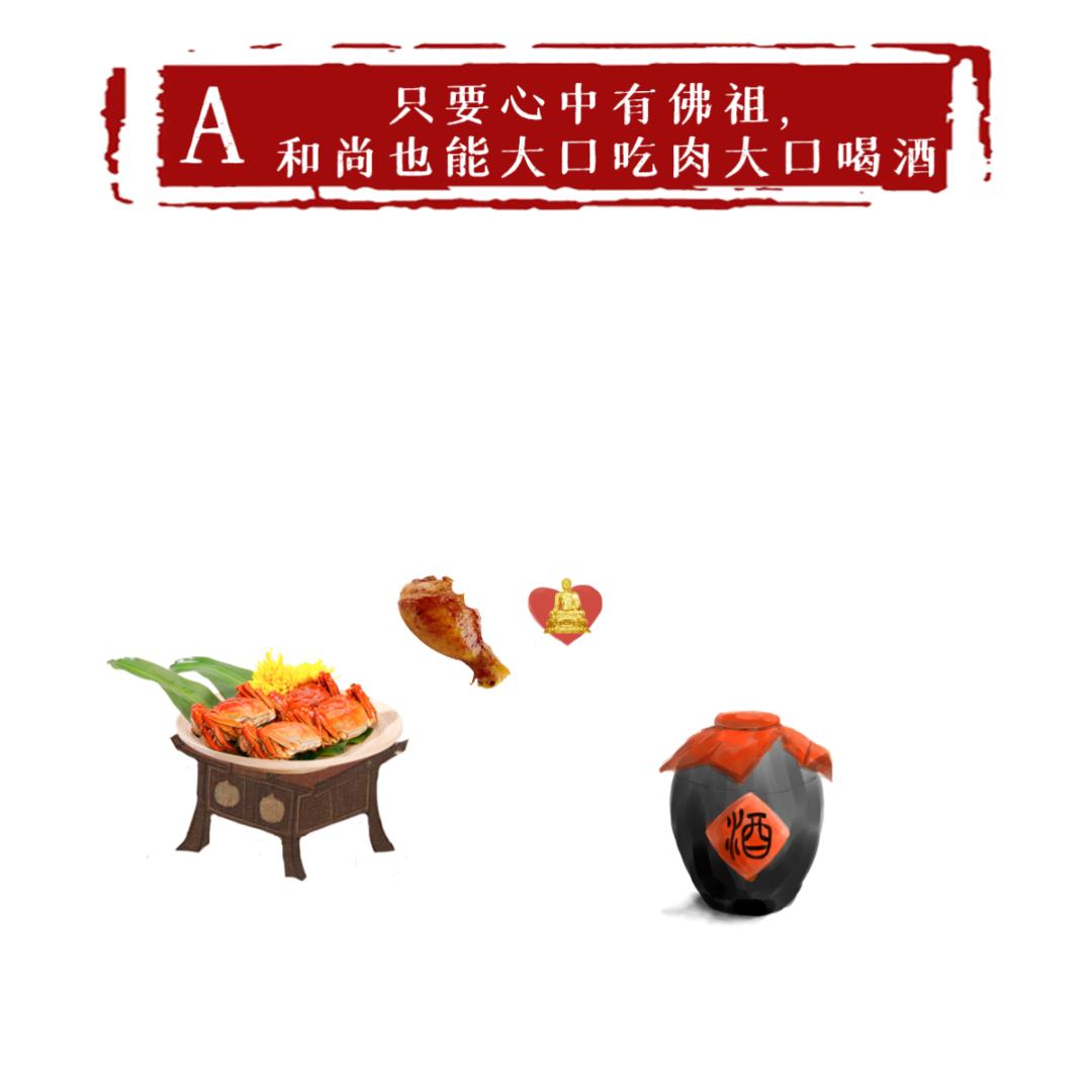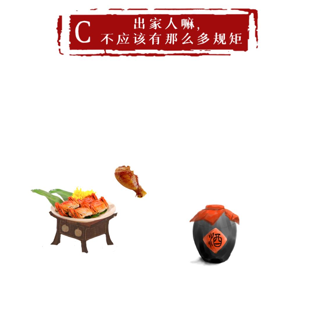 解析:“酒肉穿肠过,佛祖心中留”,后半句是“世人若学我,如同入魔道”,不是济公宣扬佛家弟子喝酒吃肉,而是警戒没有达到一定修为,不能喝酒吃肉。