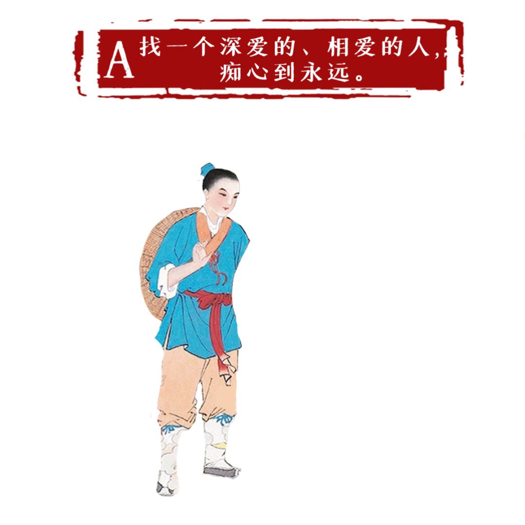 解析:原句是“愿得一心人,白首不分离”,是卓文君在司马相如劈腿后所作,意思是你丫再浪下去,老娘不陪你玩了,老娘下回找个一心一意的人。
