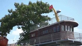 老房子、老渔船、老情怀,在保证硬件设施现代化的前提下,学设计出身的王婷婷尽可能地保留并传承海岛渔民文化。今年,小俩口还淘弄来两个报废的救生艇,还没改造完就已经成了院子里又一道亮丽的风景。
