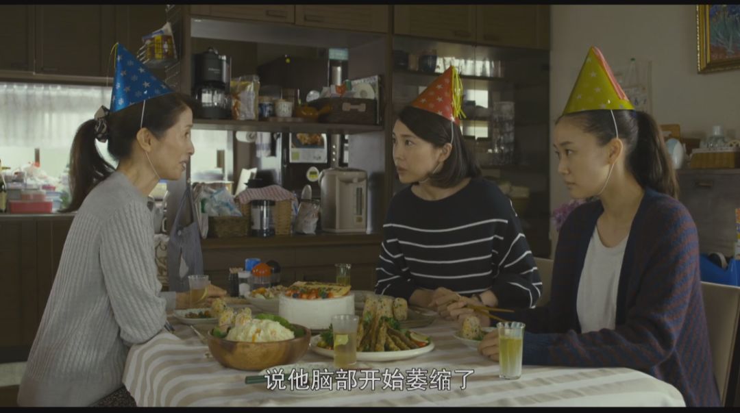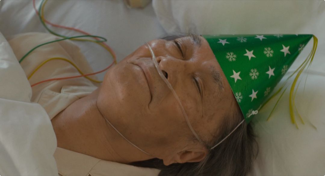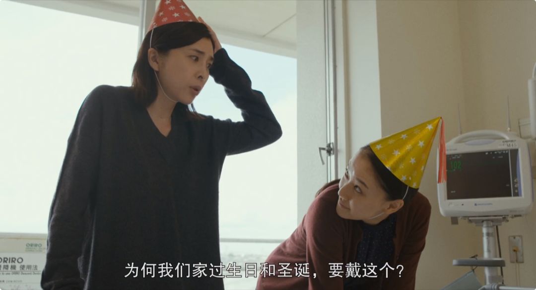 电影中,一家人聚在病房里,最后一次给父亲过生日。