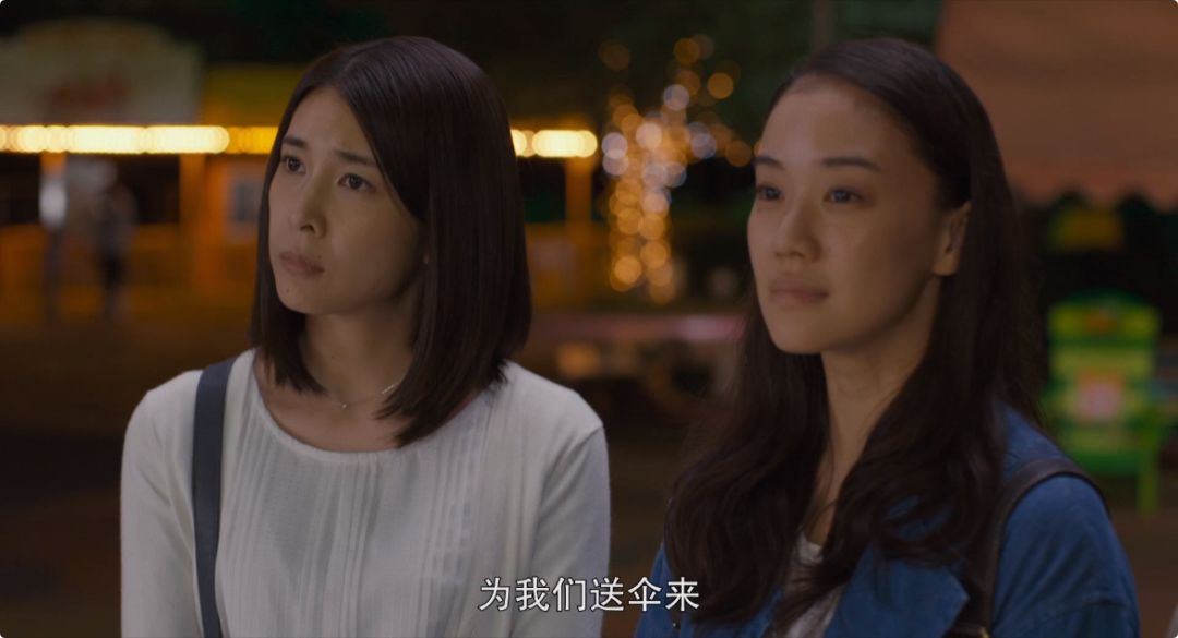 天色渐暗,开始下雨,游乐园中的母女三人正不知所措之时,父亲就提着伞来接她们了。