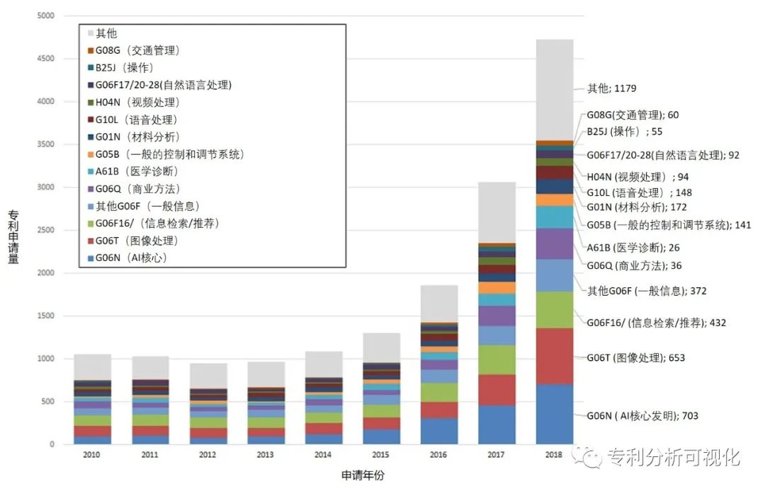 该报告中的人工智能相关专利申请分为两类: