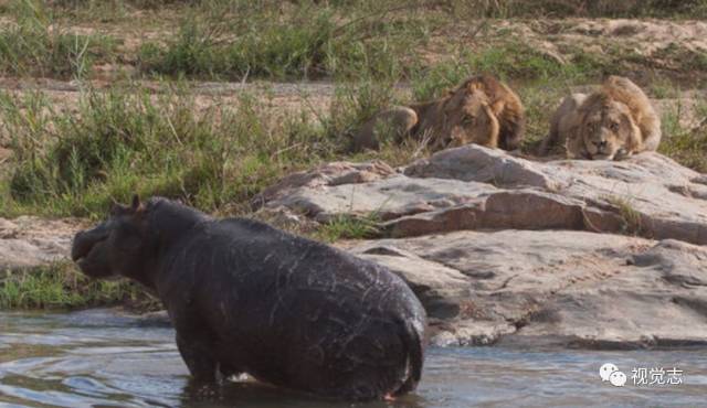 白天不行就晚上吧。曾经有一次,16只狮子趁着黑夜埋伏在岸边,伺机群殴一只上岸吃饭的河马。结果一群打一个,不仅没有得手,反而把河马惹恼了,当场一口咬死一只,最后全身而退,给狮群留下难以磨灭的阴影……