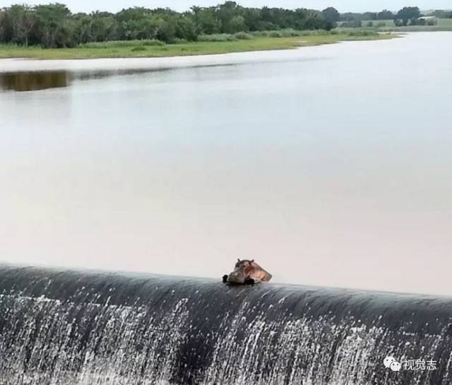 而河马跟人一样,长大了,心事也就多了。在南非有一只河马,每天都游到这里的水墙,两“手”搭在上面,静静地趴在这里,远远地眺望。