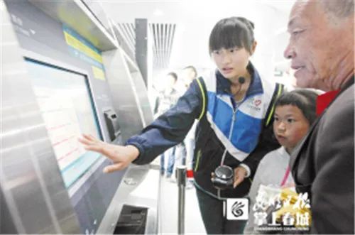 志愿者帮助乘客通过自动售票机购买地铁票建章立制