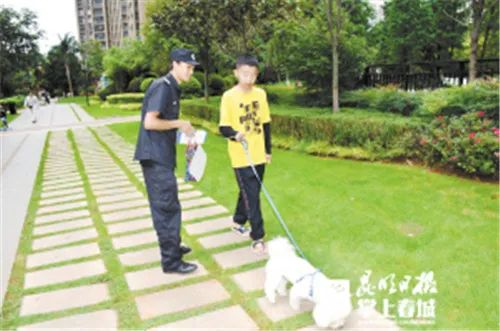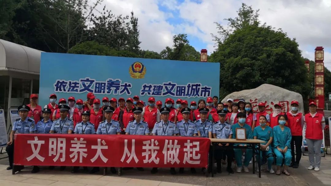 昆明市公安局组织全市公安机关开展文明养犬自觉行动宣传和不文明养犬行为整治工作。为进一步提高市民对文明养犬的认识,规范养犬行为,营造文明养犬的良好氛围,近年来,昆明持续加大工作力度,全面推进文明养犬规范化、常态化管理。2019年7月,启动“依法文明养犬·共建文明城市”集中宣传活动,向全体市民发出“争做文明养犬人,自觉做到依法养犬、安全养犬、卫生养犬、文明养犬”的倡议,并通过发放各类宣传资料、赠送犬绳、介绍养犬电子登记证办理方式、现场办证等方式,引导市民文明养犬。