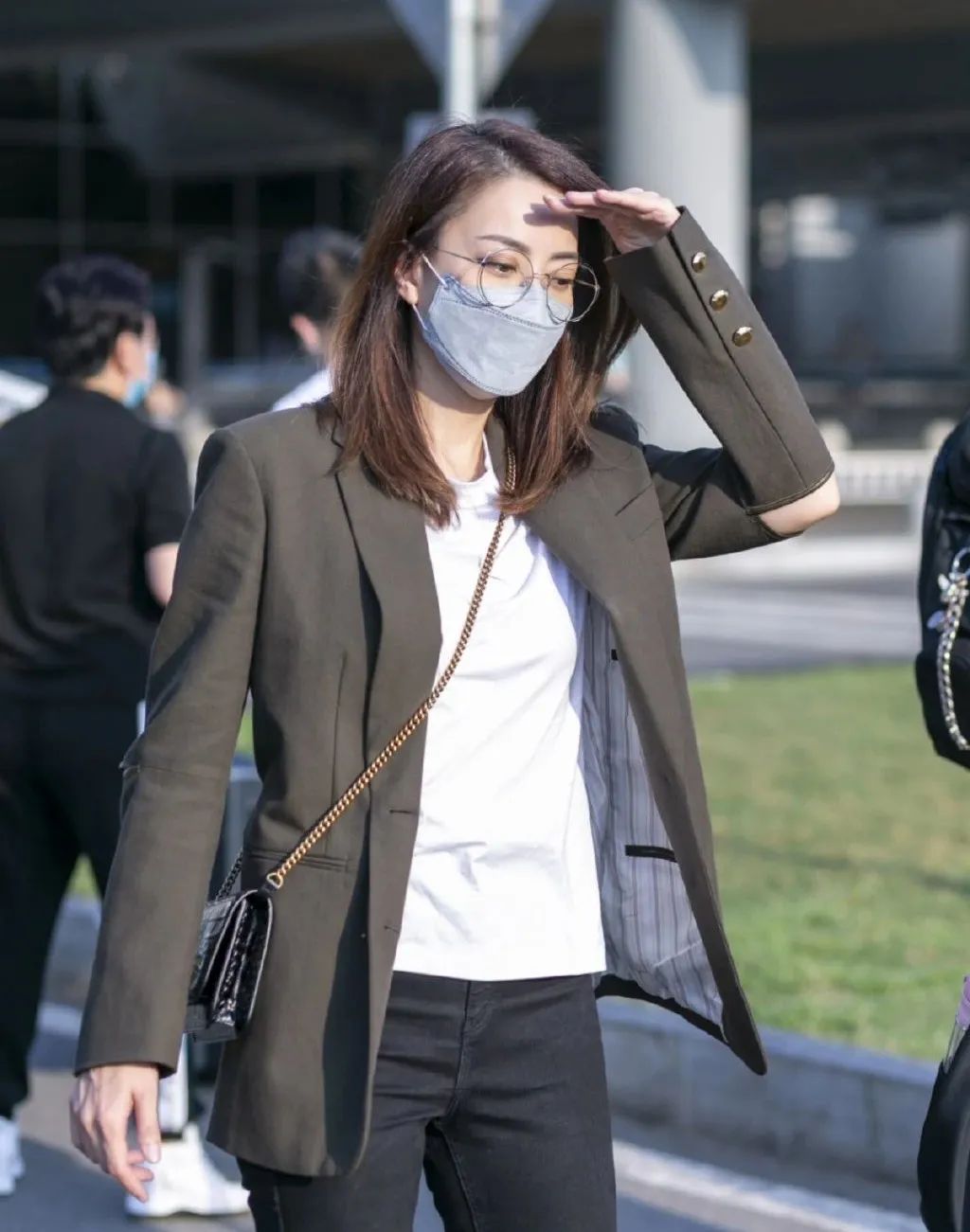 可在她的脸上却丝毫看不出岁月的痕迹,纤细紧致的身材,得体的举止,一身西服外套更是衬的她精致而又干练。