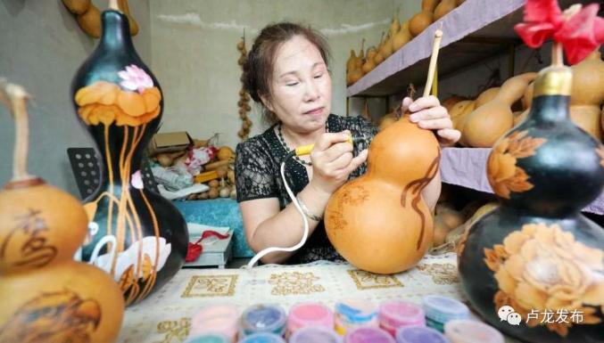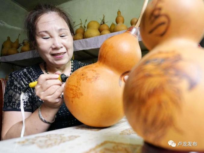 电烙笔在葫芦上游走,各式各样的作品慢慢成形。“现在日子好了,大家也追求文艺爱好了,村里办演出要用头饰服装,老李手巧,都能做出来。有一年,她还带我们用布缝出一条可以舞的大龙呢。”老邻居们告诉记者,“咱都乐意聚她这玩儿,她把葫芦雕画做得这么好,大伙儿更支持她。”