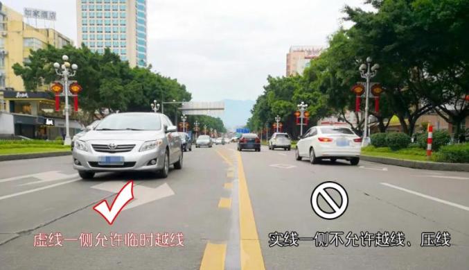 黄网格禁停线是禁止在此区域内停车的意思,这种标志一般出现在学校或者是消防部门等重要单位的大门前方,提醒车辆不可在此停车。虚线可越线借道超车或掉头