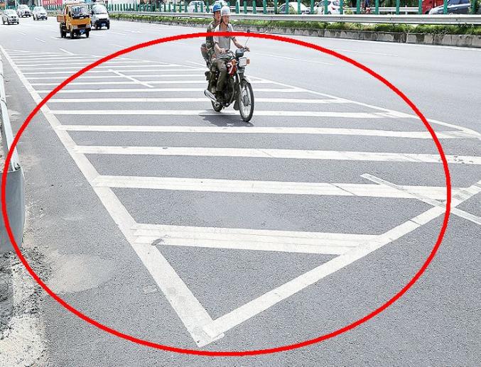 在匝道、桥梁前后并入主路的地方常常会出现白色或黄色的虚实线,虚线一侧的车辆允许临时越线超车或掉头转弯,而实线一侧的车辆则不允许压线。黄色实线禁止车辆跨越