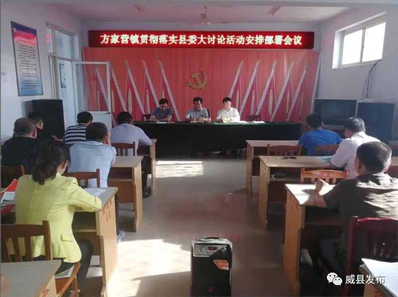 方营镇党委书记史灿新主持会议,就落实好大讨论活动提出具体要求,并就招商、项目、双代、禁煤、殡葬改革、人居环境整治、大气污染综合治理等工作做出安排;党委副书记、镇长韩超宣读了方营镇大讨论活动实施方案。