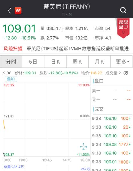 原标题:《千亿收购要黄?蒂芙尼怒告全球奢饰品老大,开盘大跌10%!》
