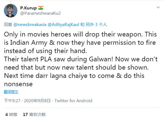 有人则说:只有电影里英雄才会放下武器。印军应该被允许开枪!