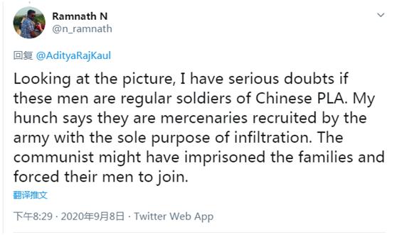 还有人叫嚣:“支持印度士兵将解放军剁成肉酱!”二是阴谋论派。