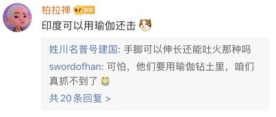 中国网友也给出了建议:印度可以用瑜伽还击。