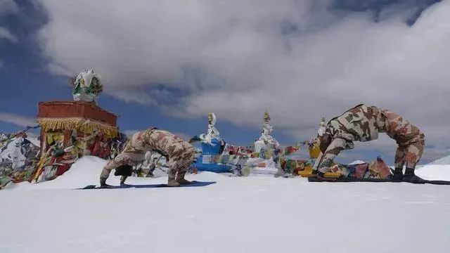 先别笑,印军还真这么干过。6月21日 “国际瑜伽日”,大批印度边防部队的士兵爬上了雪山,在雪地里瑜伽。印军声称,瑜伽代表着和平的力量和信念,因此只要苦练“瑜伽108式”,印度就可以扭转颓势、一举打败对手。