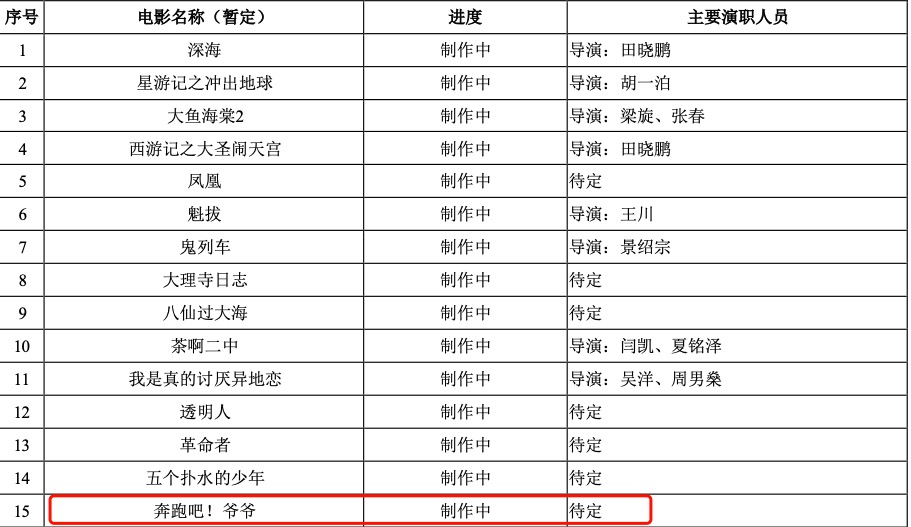 光线传媒所申请的“奔跑吧!爷爷”商标是公司正在制作的一部影片的片名。