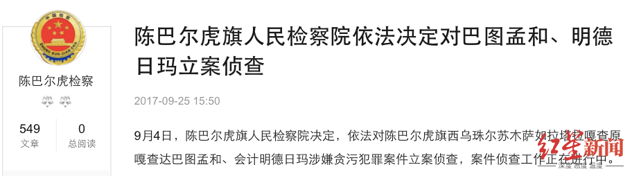 红星新闻记者随后从多位知情者处获悉,巴图孟和的爸爸是牧民,已因病去世,妈妈通格噶曾在陈旗计划生育办公室上班,目前已退休,姑父朝鲁门当年为旗人大副主任,也已退休,其表哥白音塔拉曾任农牧局局长、副旗长。