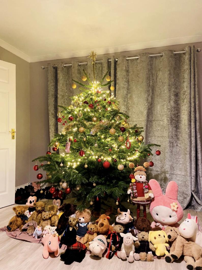 那个冬天,回英国我们去拜访了他的妈妈,一位优雅而温和的老人,收藏了好几百只泰迪熊。我们去冬日的森林深处徒步,在雪地里走过的最浪漫的路。天地之间只剩下我们两个人,似乎可以走到世界的尽头。