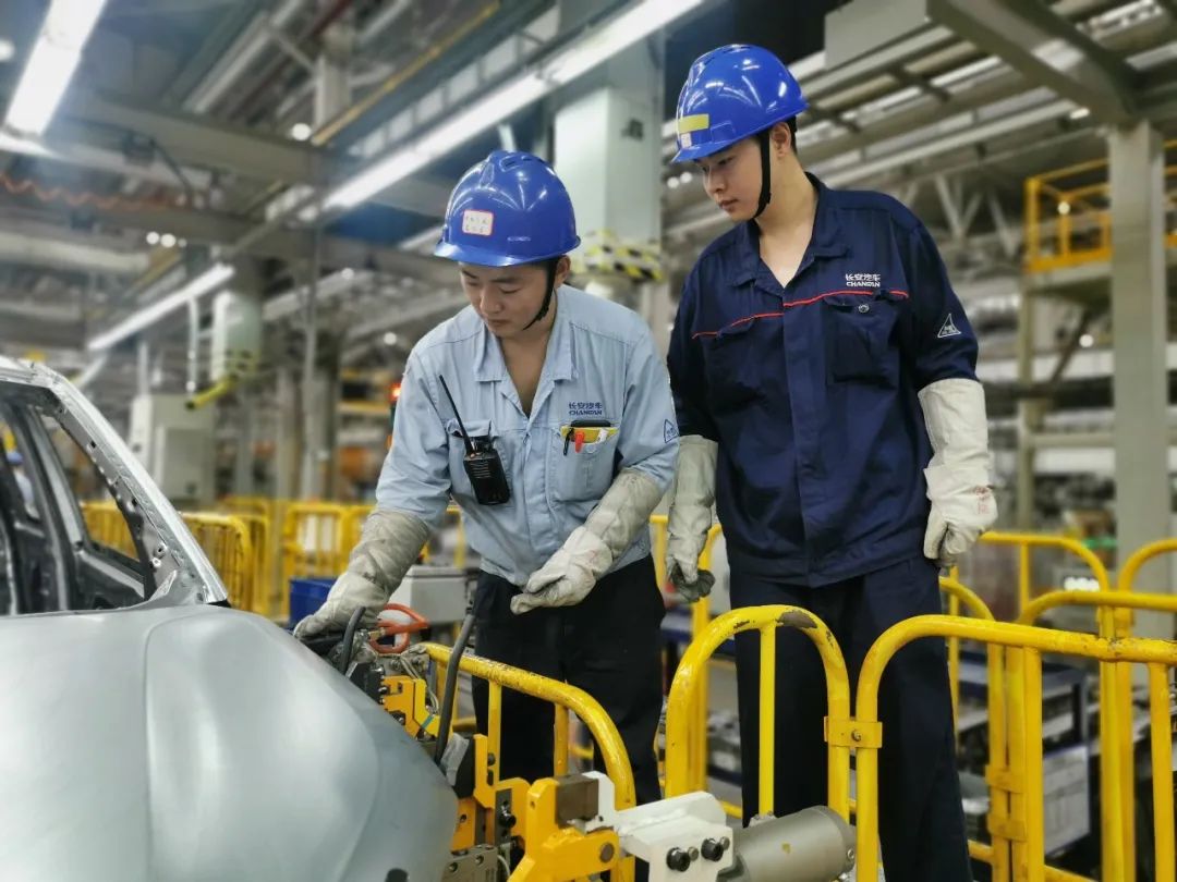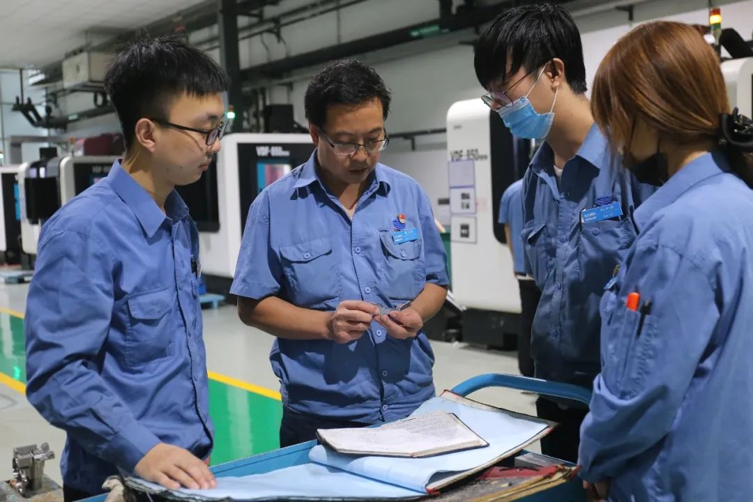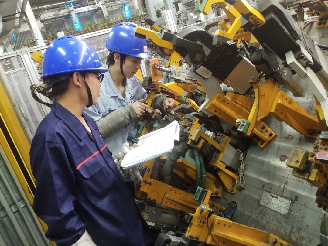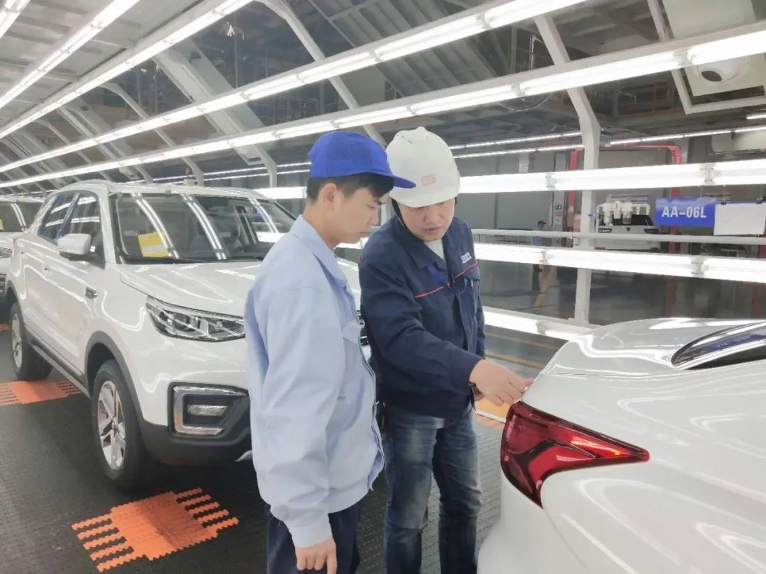 两江工厂皮志涛带领杨培逐步了解作业指导书,传授修锉电极的标准、不同车型的零件状态、上件先后顺序等技巧。(皮志涛)