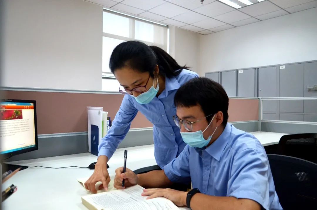 党委工作部导师廖雪兆带领新进大学生杨亭修订公司党建标准化体系,在带教过程中,廖雪兆对杨亭的工作在宏观和细节两个方面同时加以指导,帮助她尽快了熟悉党建业务。(杨亭)