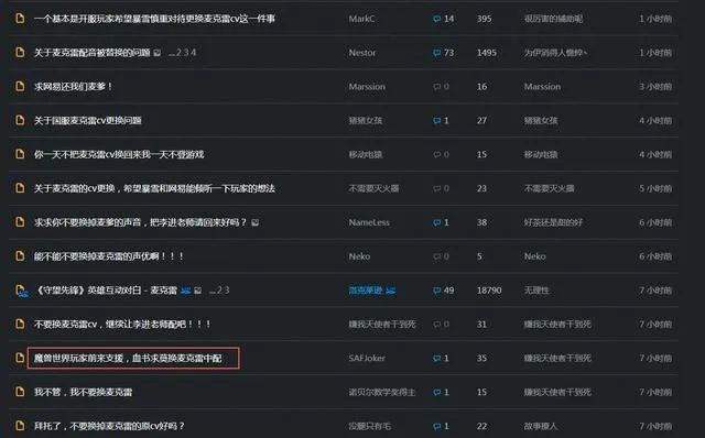 离我们最近的一个例子发生在2018年7月,《守望先锋》突然决定更改麦克雷的国语配音。得知这一消息后,大批玩家前往官方与非官方的论坛与社区下,请愿暴雪与网易不要更换配音演员。