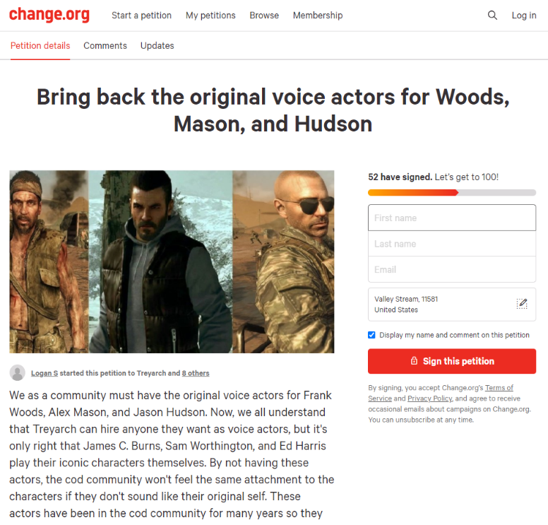 这些粉丝确实想为伯恩斯做些什么,除了在社区与论坛发声,他们还跑到change.org在线请愿网站,发布“让伍兹与梅森的老配音演员回归”的请愿。