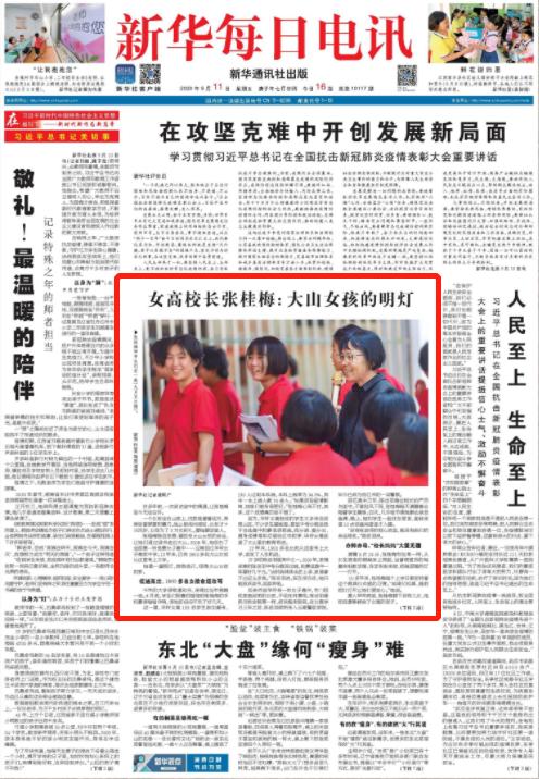 前不久,张桂梅被中宣部、教育部评为“全国教书育人楷模”。教育部发出通知,要求教育系统深入开展向张桂梅同志学习的活动。丽江市专门设立了“张桂梅教育基金”,所筹集资金将用于支持华坪女高发展、补助贫困学生。