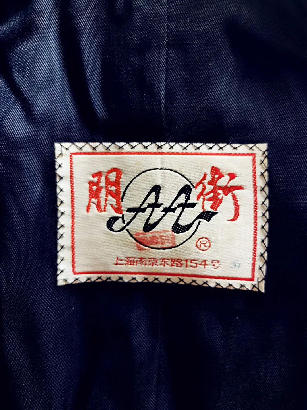 写到这里,我马上打开樟木箱子,翻出当年去日本时在朋街定做的西装套裙,藏青色毕叽呢,散发出樟木的味道,那商标仍然清晰,就如该店的历史悠久而美好。