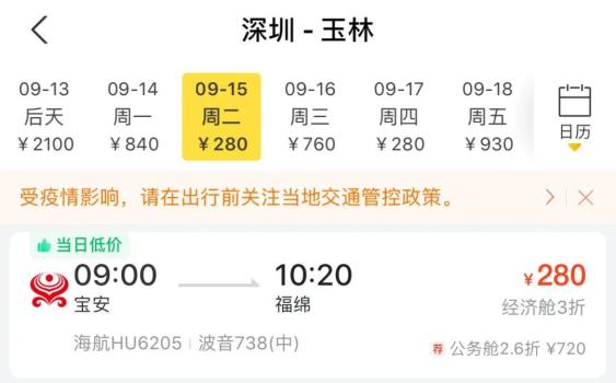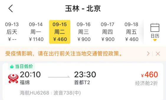 原标题:《9月15日起,玉林飞北京、深圳的航班可以购票了,票价....》