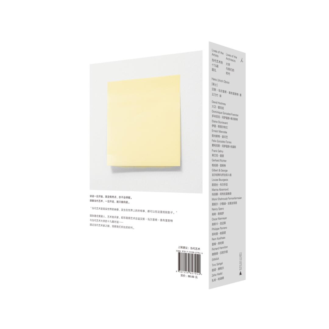 两度被英国权威艺术杂志《艺术观察》评为“艺术界最有影响力的人物”、伦敦蛇形画廊联合总监汉斯•乌尔里希•奥布里斯特做过一件特别牛的事情:在过去30年里,他坚持与各种艺术家进行对话,累积超过2000小时的录音——这本书所选取的,便是来自不同领域的当代艺术家代表:大卫·霍克尼、弗兰克·盖里、格哈德·里希特、路易丝·布尔乔亚、玛丽娜·阿布拉莫维奇、雷姆·库哈斯、扎哈·哈迪德……