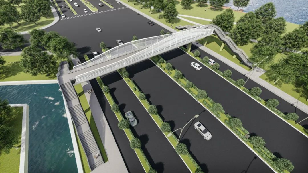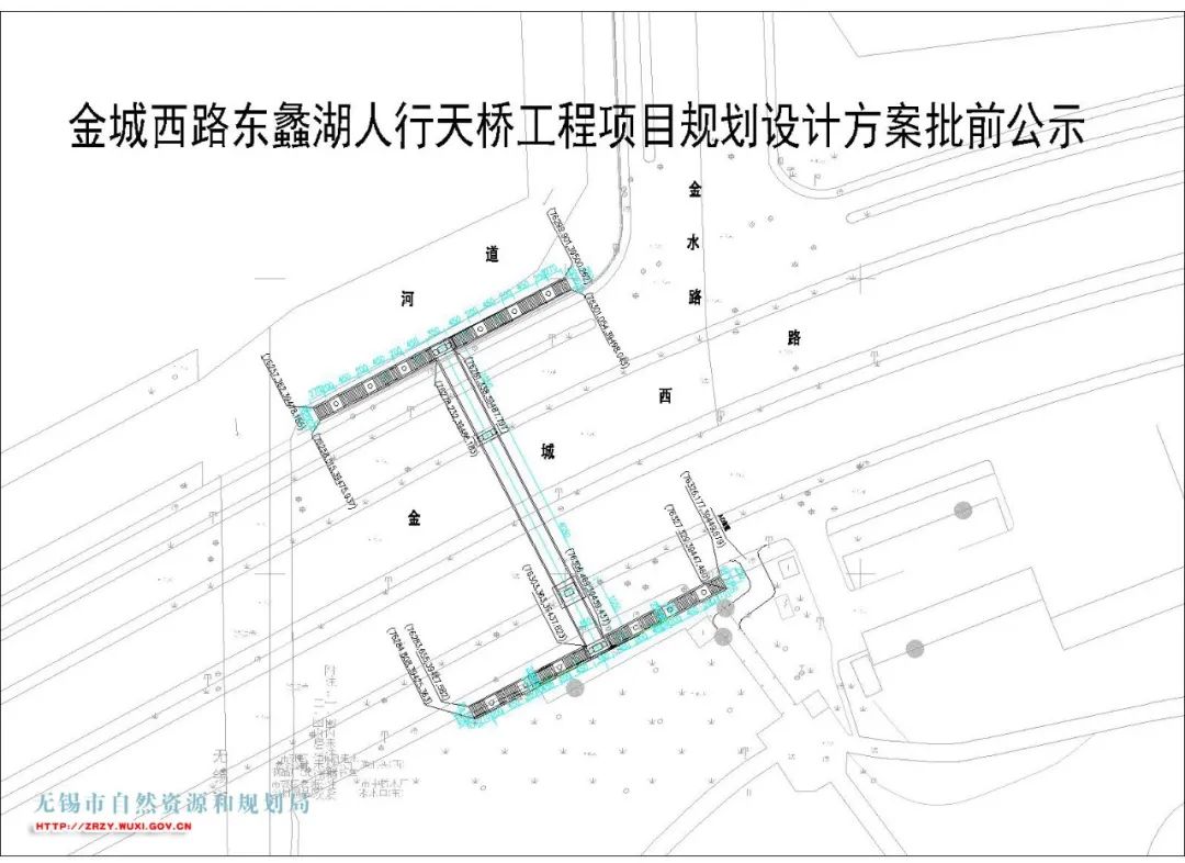近日,无锡市自然资源和规划局滨湖分局对金城西路东蠡湖人行天桥工程项目规划设计方案进行了批前公示。