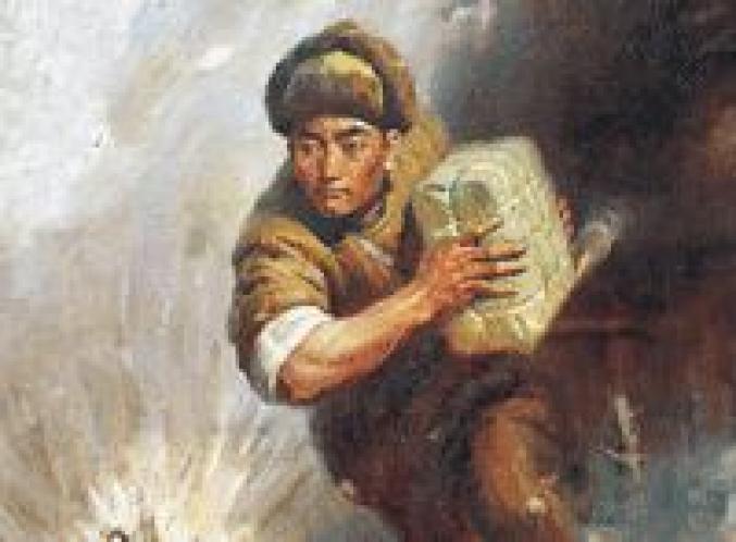 为了保卫阵地,他毫不畏惧地抱起炸药与敌人同归于尽,献出了年轻的生命,展现了共产党人革命理想高于天的英雄气概。