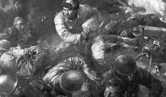 数次阻击成功后,杨根思身边只剩下几个战友,而后续部队被阻隔在半山腰,无法上来增援。杨根思果断命令通讯员把重伤员背下阵地,在重机枪手打完子弹后又命令机枪手撤出阵地。面对蜂拥而上的敌人,杨根思从容不迫地抱起炸药包冲向敌群,与敌人同归于尽。