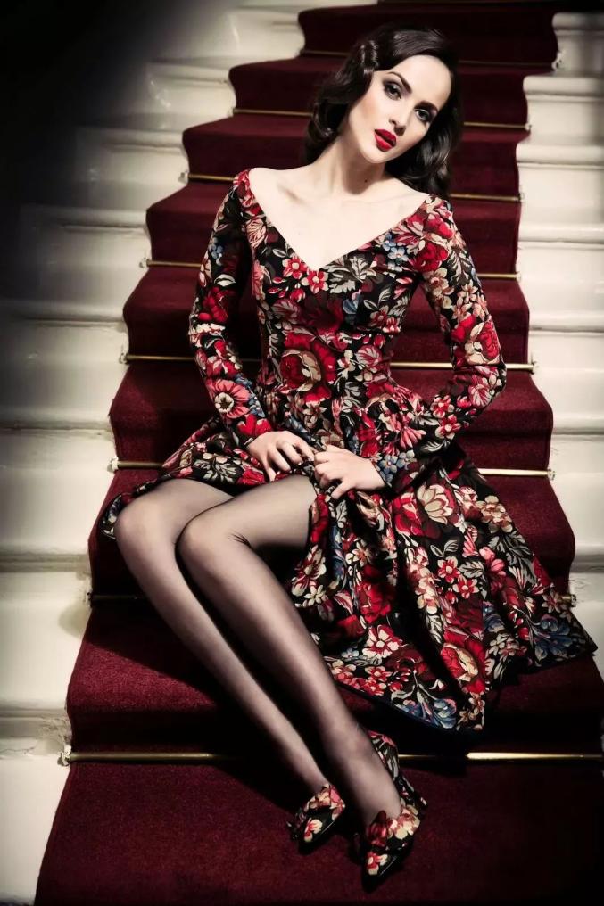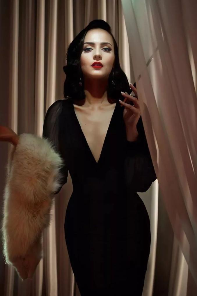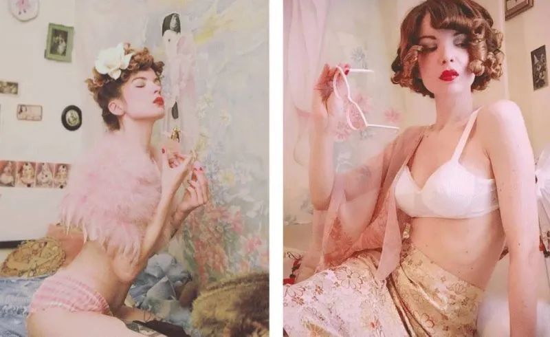 而她的Vintage装扮甚至得到了复古网红鼻祖脱衣舞娘Dita Von Teese的肯定。