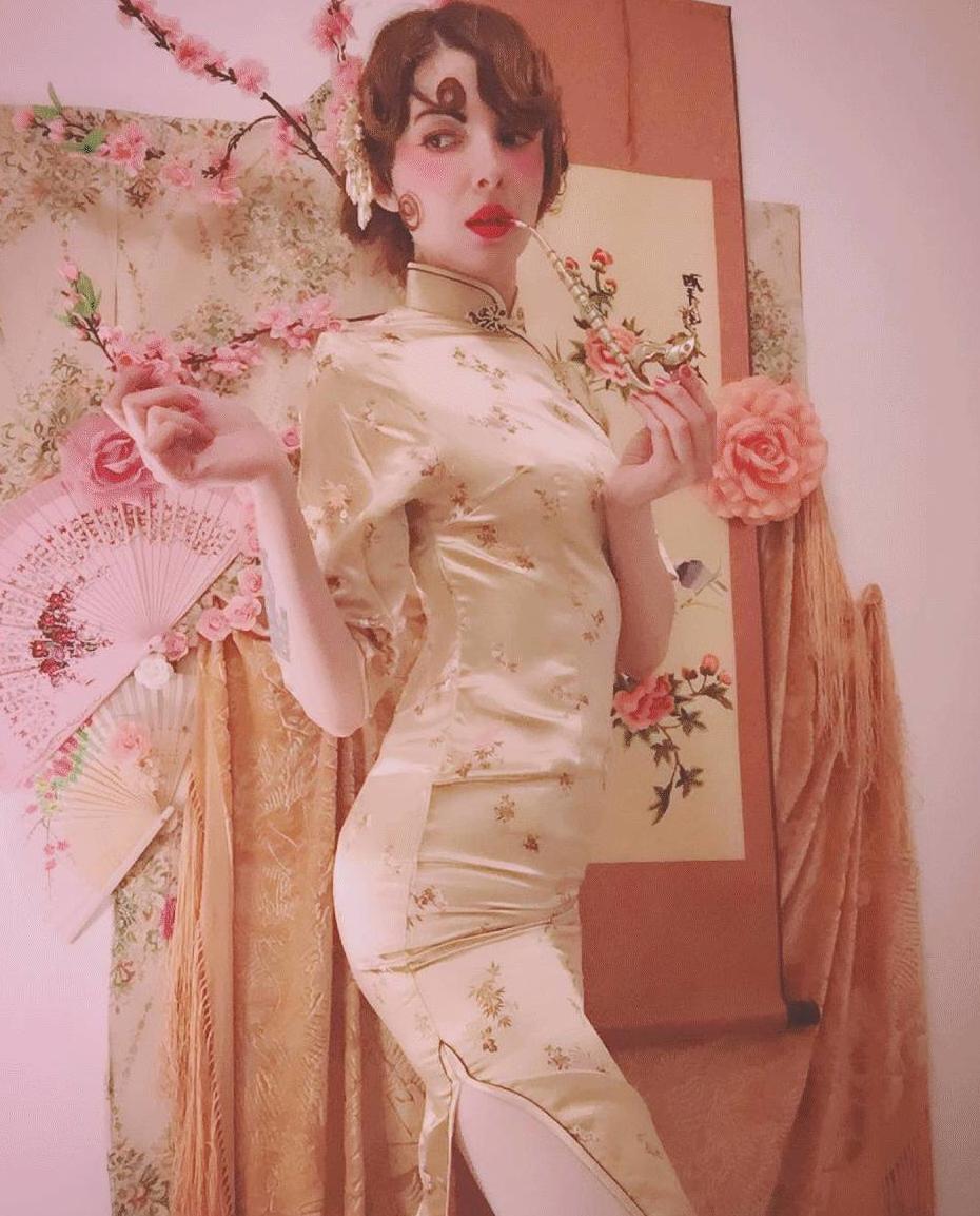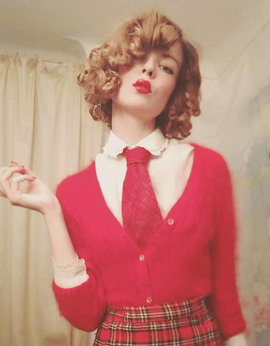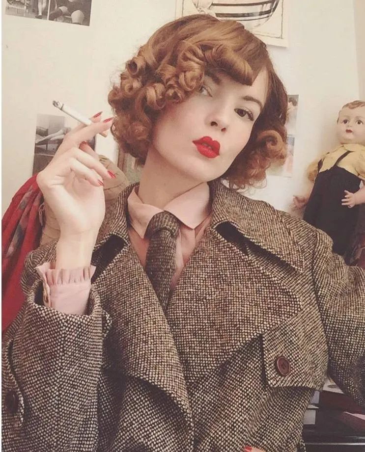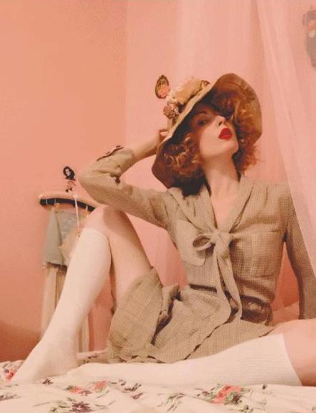 和那些追求当代时尚的妹子不同,她只钟情于上个世纪的复古装扮。