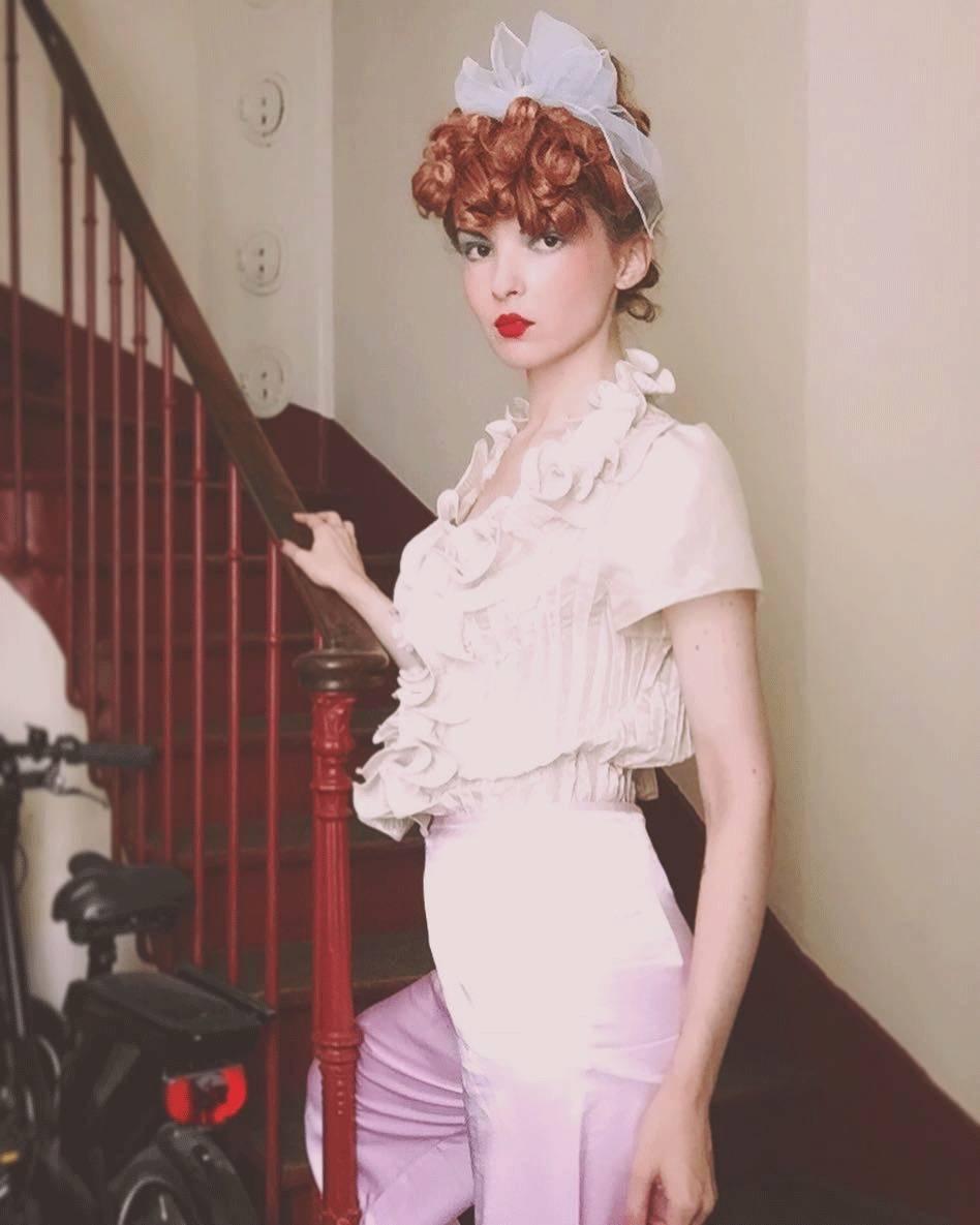 从服饰到配饰都一丝不苟,搭配一堆精致的家具摆设,Fanette仿佛生错了年代。