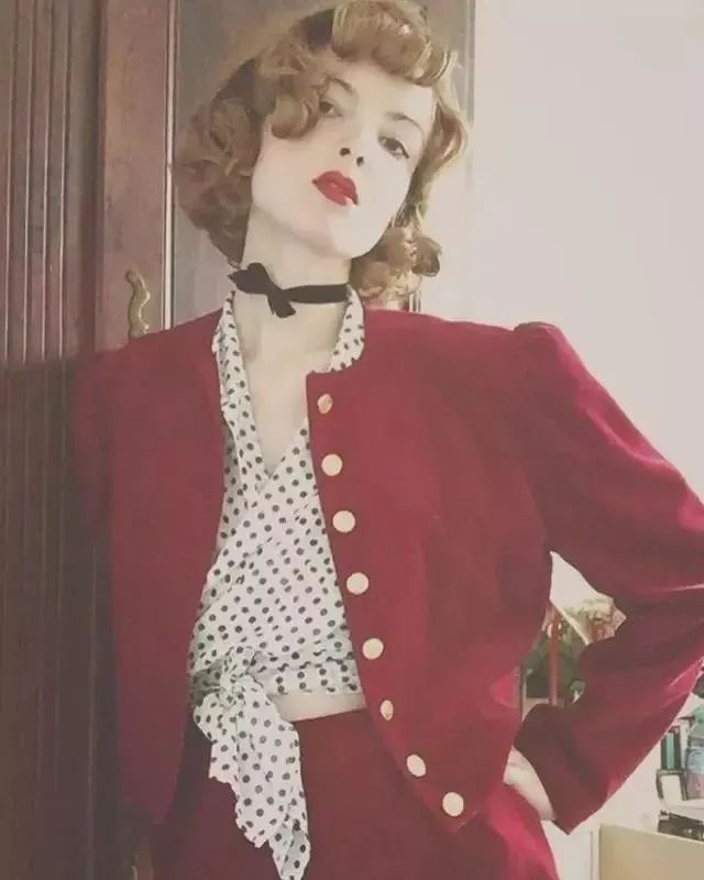 原本就是造型师+模特的她,驾驭起这些考究的服装、优雅的卷发和复古红唇,简直是得心应手。