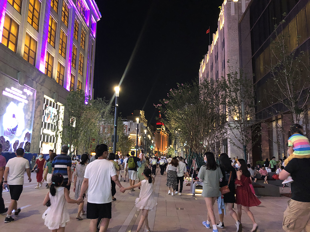 2020年9月4日,华灯初上,南京路步行街东拓段游人如织
