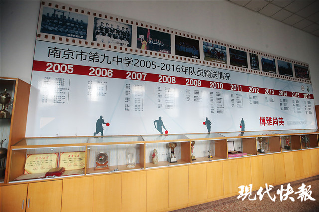 现代快报记者在九中篮球馆看到,有一间屋子专门用来摆放球队获得的荣誉,奖杯摆满了整间屋子。在房间和门外的墙上,胡雪峰、唐正东、孟达等职业球员的照片铺满了几面墙。在篮球馆内,也贴着易立、侯逸凡等现役球员的照片,激励着球队的孩子们坚持训练。