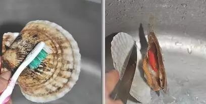 下面列举常见贝壳类海鲜清洗方法:扇 贝