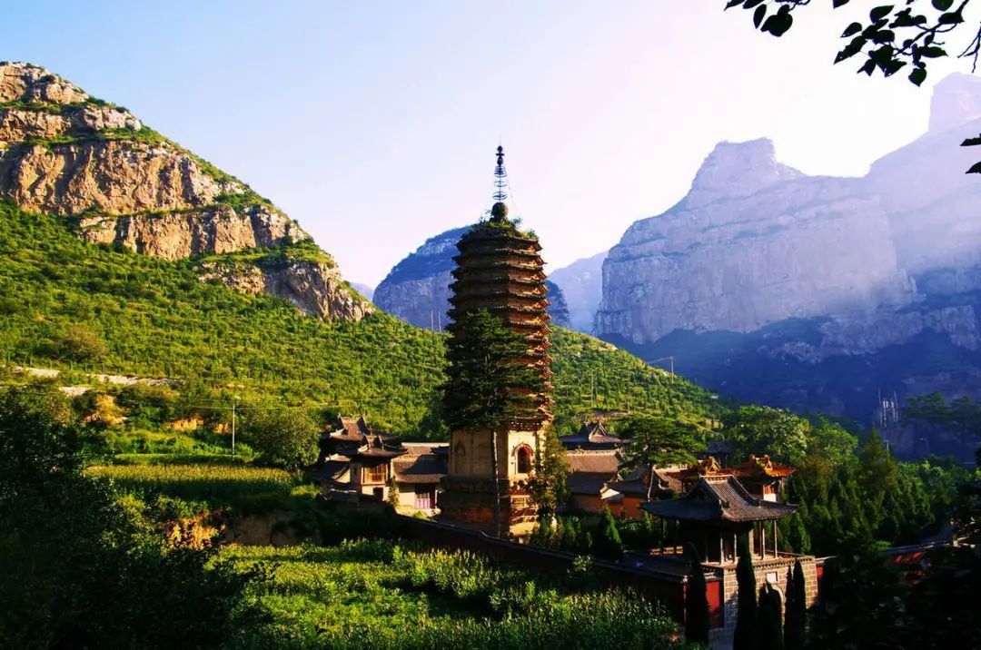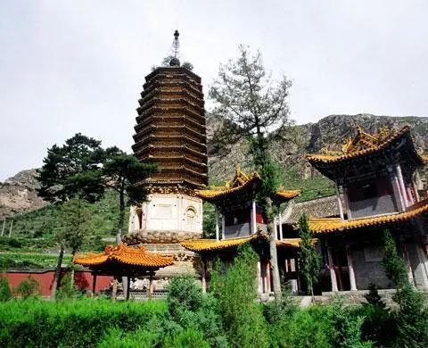 觉山寺位于灵丘县红石塄乡觉山村西,群山环抱,东望笔架山,西连老虎尖,北倚翅儿崖,南望凤凰台,诸峰险峻挺拔,壮美秀丽。寺下唐河潆洄,喷珠溅玉。难怪明总督王象乾写出“盘旋鸟道步山隈,笏立天门如划裁。涧水远从天际落,僧房高自洞中开”的诗句来。
