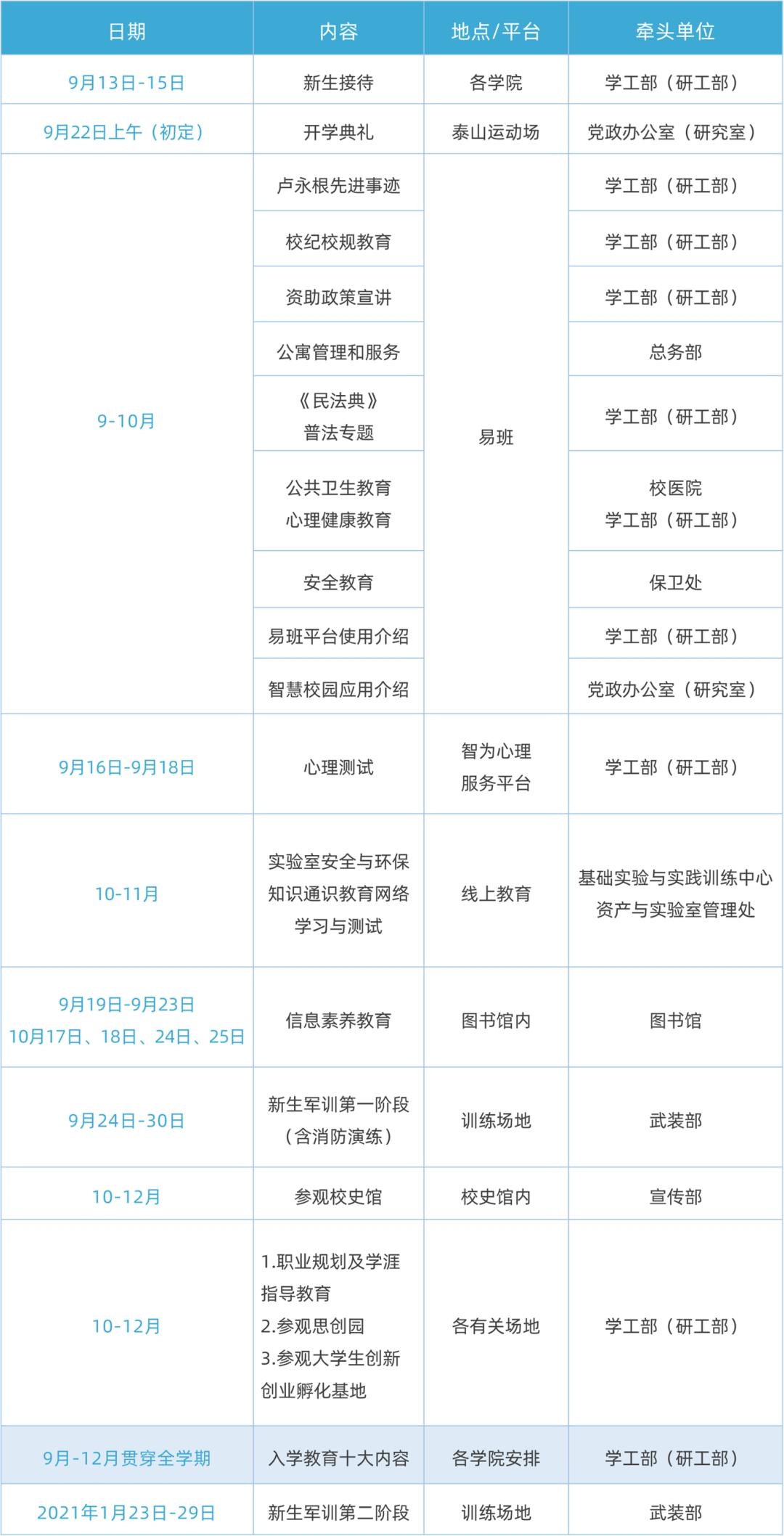 (一)本科新生定于2020年9月13日-15日入学报到。具体安排如下: