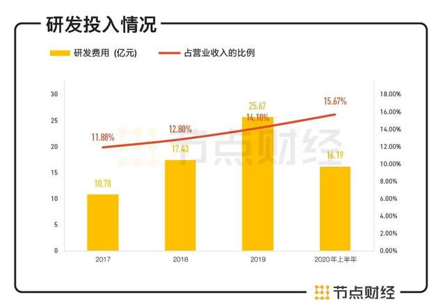 尤其是在2020年上半年,京东数科的研发占比继续增长至15.67%,这一数字已经超过A股95%的企业,在科创板年营收超百亿的公司中(含已申报)仅低于中芯国际位列第二名,相比国际互联网科技巨头同样毫不逊色。