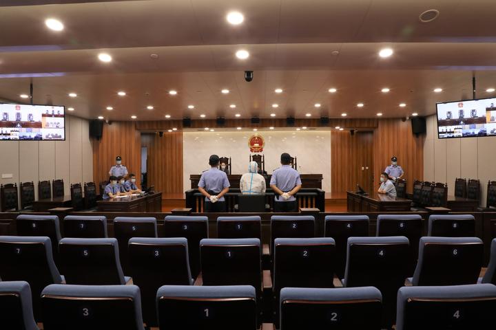 2020年4月22日,浙江省绍兴市中级人民法院一审公开开庭审理衢州市柯城原区委副书记、区长方庆建受贿一案庭审现场。