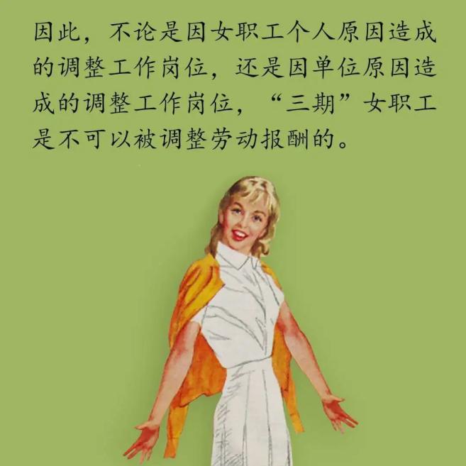但是,“三期”女职工也并非绝对不可以被调整工作岗位。在满足以下几种情形时,可以对其岗位进行调整:
