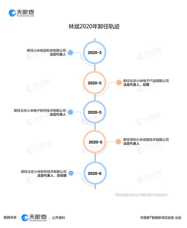 天眼查数据还显示,自今年3月份,林斌卸任小米有品科技有限公司法定代表人开始,短短三个月内其已连续卸任小米旗下5家公司的法人工作。