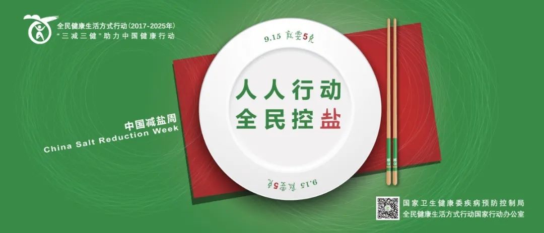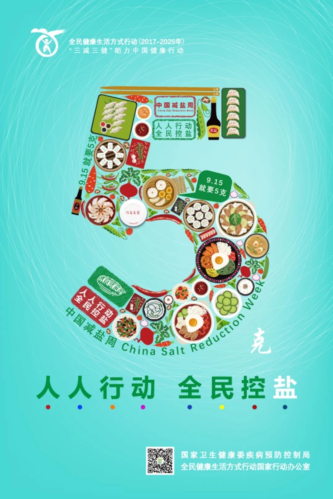 2020年9月1日是第14个全民健康生活方式日,国家行动办公室于9月的第3个星期(9月14日至20日)开展中国减盐周宣传活动,向公众宣传“915”(就要5克)的减盐理念,传播低盐饮食知识,促进全社会共同关注并践行减盐行动。(附海报原图下载地址,有需要可自行下载)