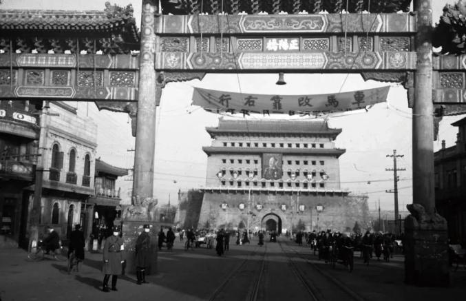 北京车马改靠右行宣传横幅。抗战时期,美国汽车由于马力大、性能好,开始大量进入中国,左驾车占了数量优势,于是国民政府下令从1946年1月l日零时起,汽车一律靠右行。当年颁布的《公路汽车监理实施办法》也开始改为右行制。