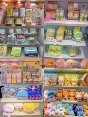 店铺一共2层,超瞩目的就是金亮色的巨型镜面球~入口的RYAN、APEACH、CON萌得发甜!1楼是可爱的玩偶和文具,各种可可爱爱萌到不行,不用去韩国也能Get啦!